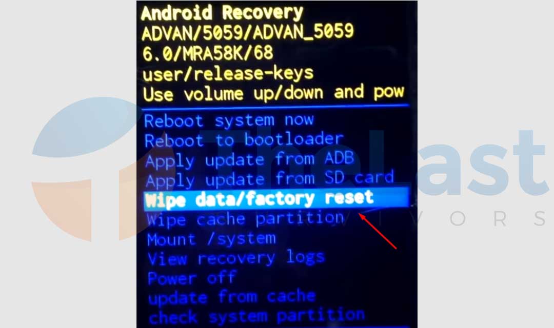 Tap opsi wipe data (keep sms, contacts and photos).