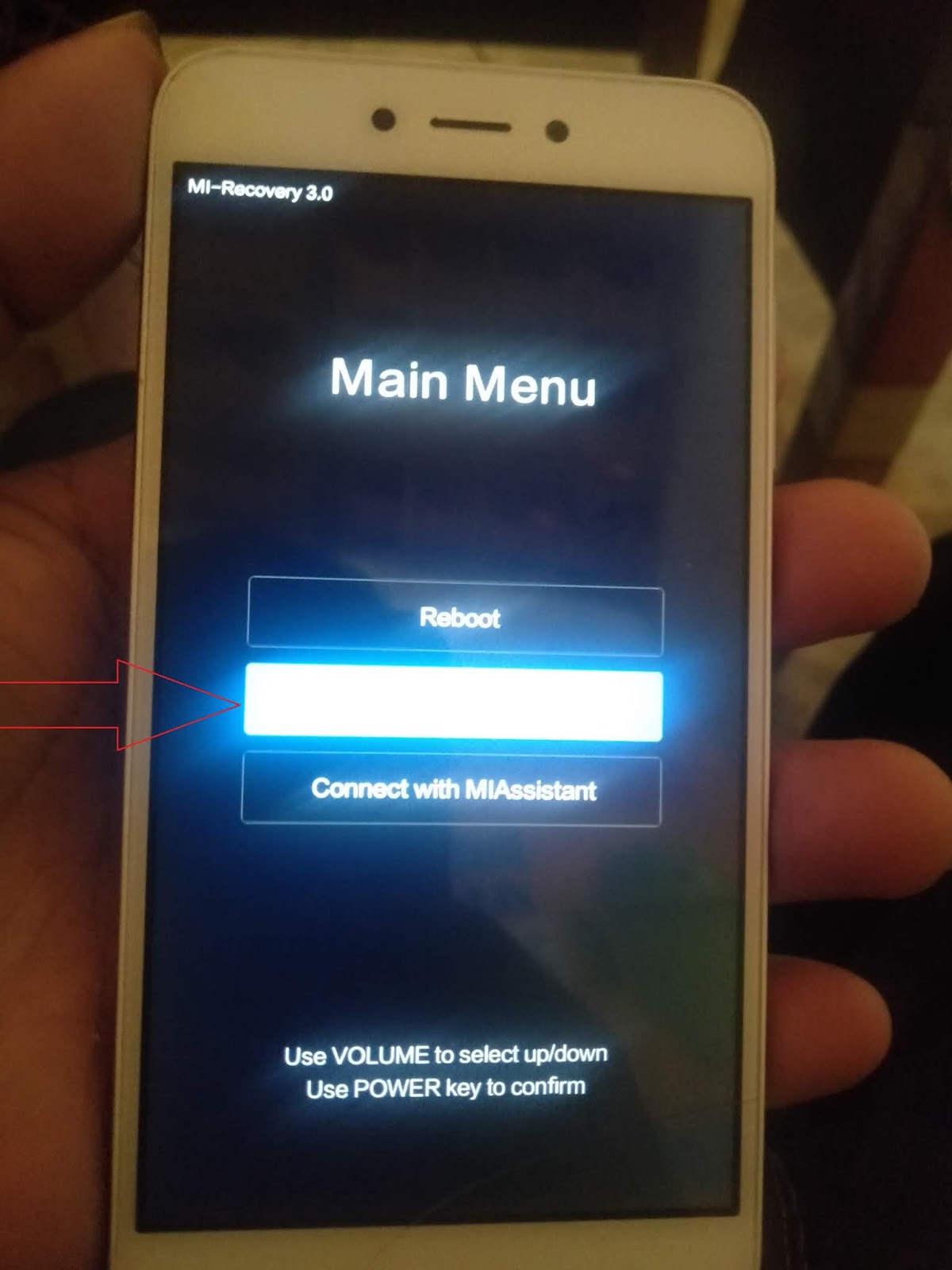 When recovery mode pops up release the volume up key.